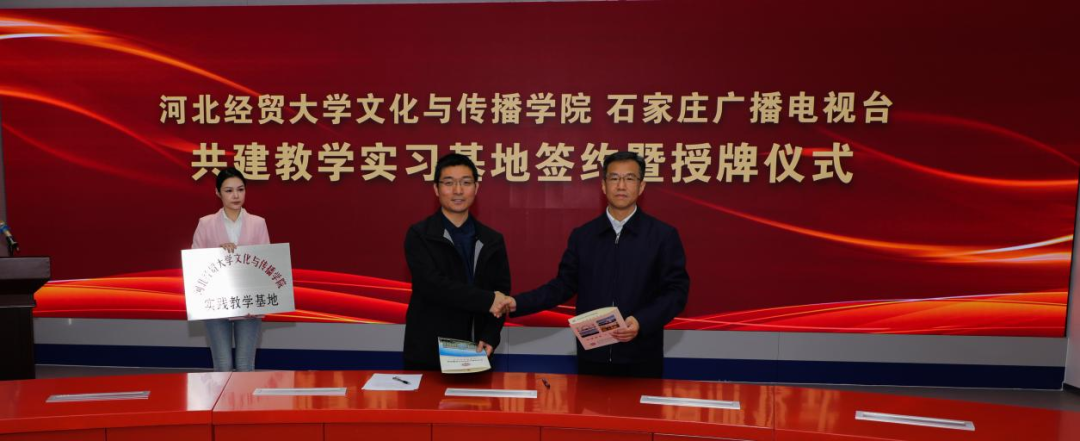 双方在授牌仪式上签署了合作协议,并合影留念。之后双方在座谈环节就如何开展全方位、深层次合作进行了深入交流,为今后的合作发展提供了思路和方向。此次活动奠定了文化与传播学院和石家庄广播电视台的合作关系,开辟了校地互通赋能的新路径,拓展了学生实习就业的新平台。